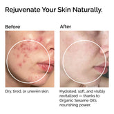 100 % Organic Cold-Pressed Sesame Seed Oil is a pure, natural oil extracted from sesame seeds using cold-pressing to preserve all its nutrients. Rich in essential fatty acids, antioxidants and vitamins, this lightweight oil deeply nourishes, hydrates and protects the skin. Its soothing properties help calm irritation while promoting elasticity and a natural glow. Suitable for all skin types, it can also be applied to hair to restore shine and softness.
