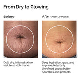 Idéal pour un usage quotidien, il soulage la sécheresse, les rugosités et la desquamation. Sa forte concentration en acides gras naturels et en antioxydants favorise l'élasticité de la peau, ce qui en fait un excellent choix pour atténuer l'apparence des vergetures et des cicatrices.