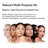 100% Organic Castor Oil – Cold-pressed, nourishes hair, eyelashes, brows & skin for hydration, growth, and natural beauty.